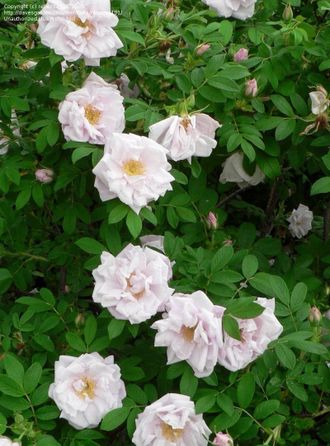 Роза Шнеекоппе (Scheekoppe) – абсолютно зимостойкая роза с крупными бело-розовыми махровыми ароматными цветками и цветением 4 месяца. Её заслуженно называют “великолепной ругозой”. Высота куста 80-100см, ширина 100см. Побеги прямостоячие, густошиповатые. Листва ярко-зелёная, густая, здоровая, осенью желтеет. Опадает чисто, ошмыгивание не требуется. Цветки крупные, 6-8см, махровые и полумахровые, с длинными гофрированными лепестками и лёгким ароматом розового масла. Цвет лепестов бледно-лиловато-розовый, в полном роспуске и на ярком солнце почти белый. Один цветок держится около 5 дней. От дождя лепестки осыпаются, нет загнивания на кусту. Цветение начинается в июне, первая волна самая обильная, и далее до сентября. Последние цветки раскрываются рядом с уже ярко-красными плодами. Декоративные плоды сохраняются большую часть зимы. Солнцелюбивая.