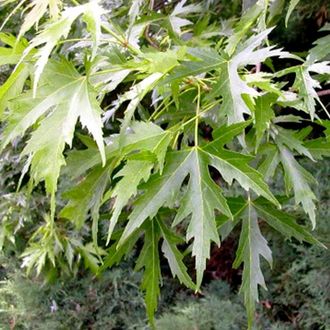 Клен серебристый – это высокое и раскидистое дерево, достигающее 20–35 метров в высоту, зачастую даже больше. Молодые кленовые деревца обычно растут очень быстро, стремительно набирая рост вверх. В среднем за год дерево может вырастать на 80–100 см. Взрослые деревья растут ввысь медленнее, но зато прилично увеличиваются в ширине. В среднем – до 25–30 см. Крона относится к ажурным. Цветет дерево небольшими желтенькими цветочками, которые можно с легкостью разглядеть.